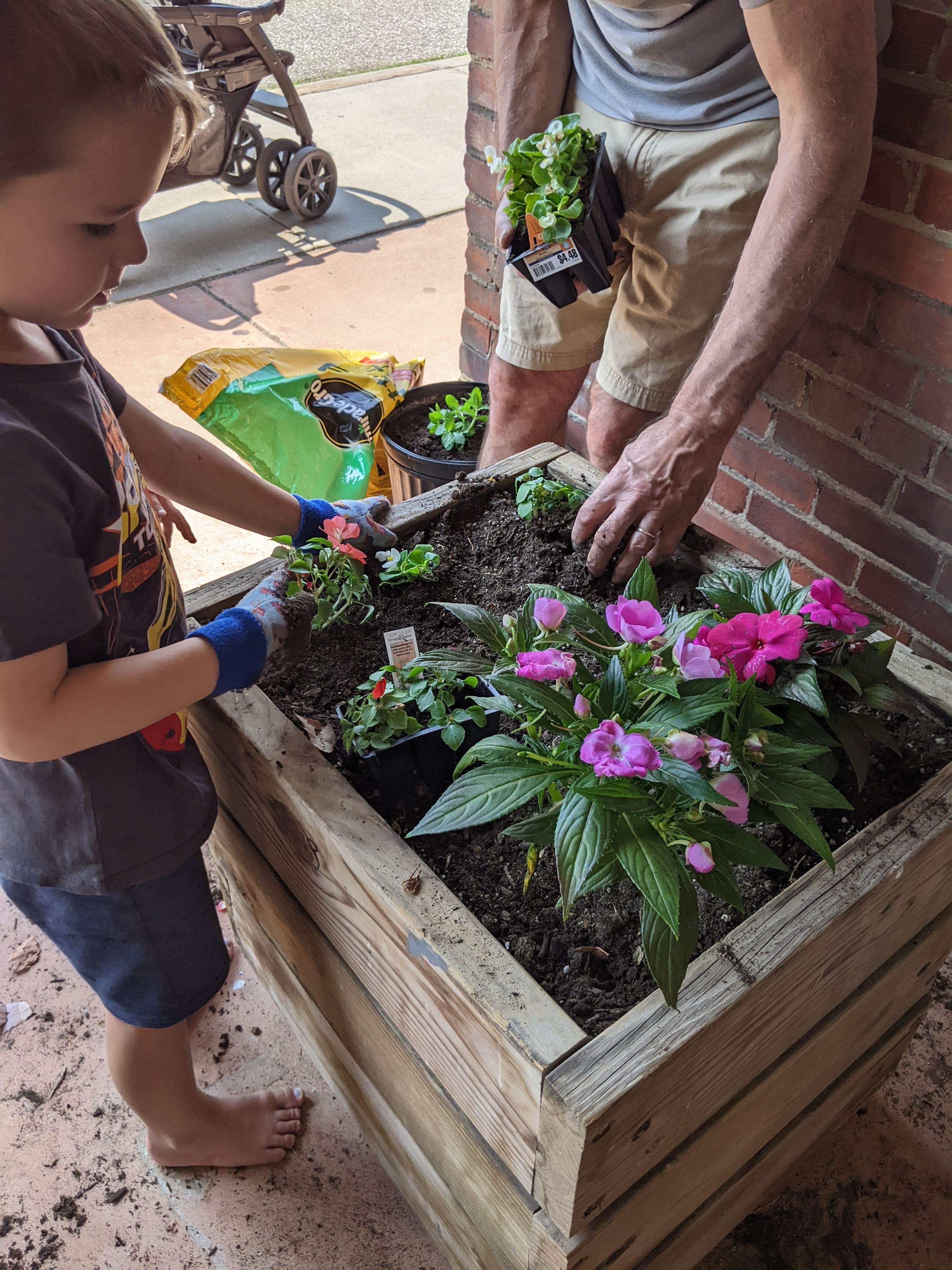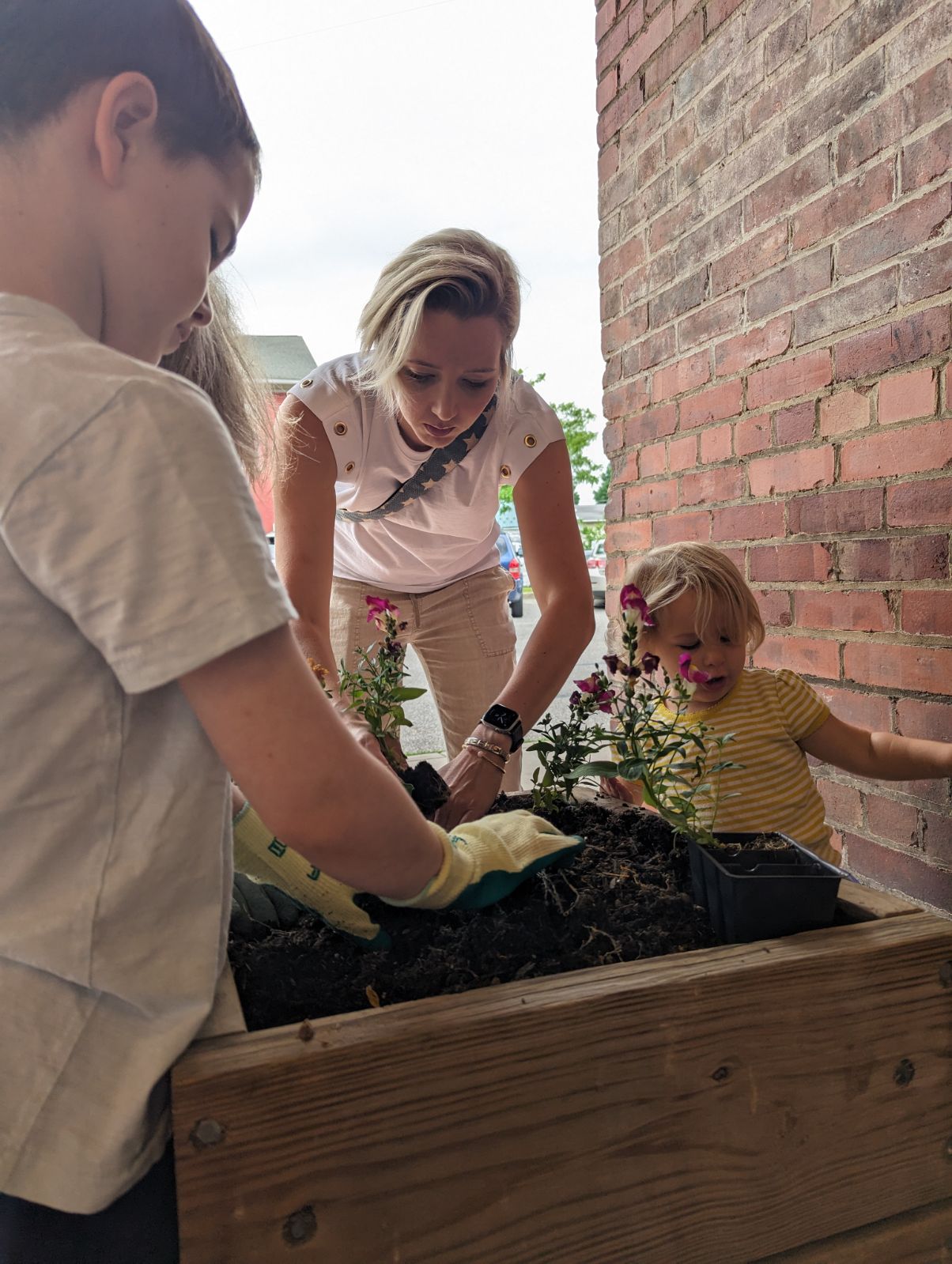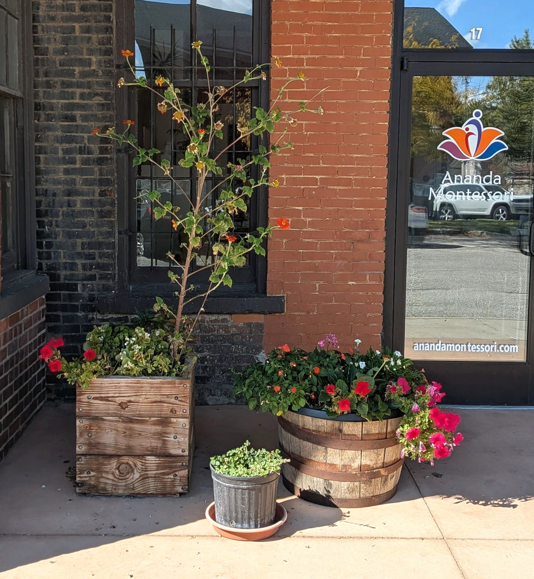 As part of our botany study we chose flowers to plant, prepared the soil, arrranged our design, and atttended to the needs of the plants. The children and adults love this annual event, as well as taking care of the flowers throughout the growing season.